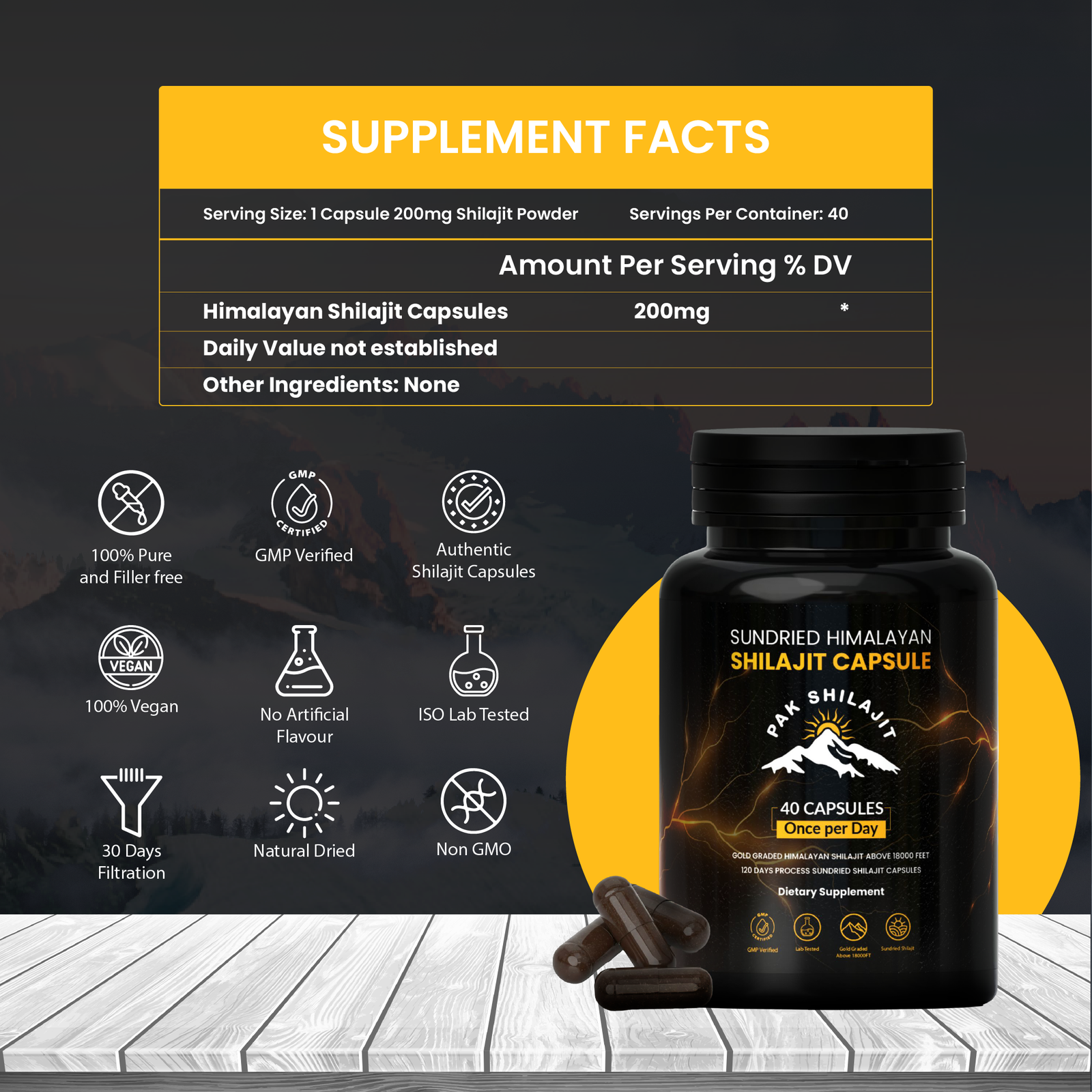 Sundried Himalayan Shilajit Capsules 40 pieces